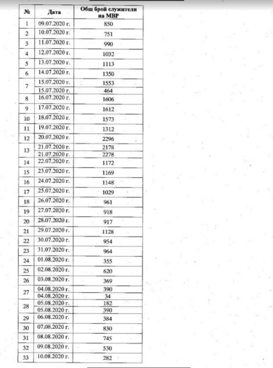 Ето и общия брой чиновници на Министерство на вътрешните работи, охранявали антиправителствените митинги от 9 юли до 30 септември 2020 година: