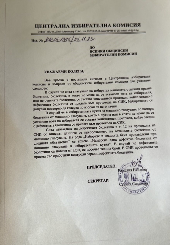 След сигналите за проблеми с машините в някои секции в София, от ЦИК са изпратила отговор до Общинската изборна комисия.