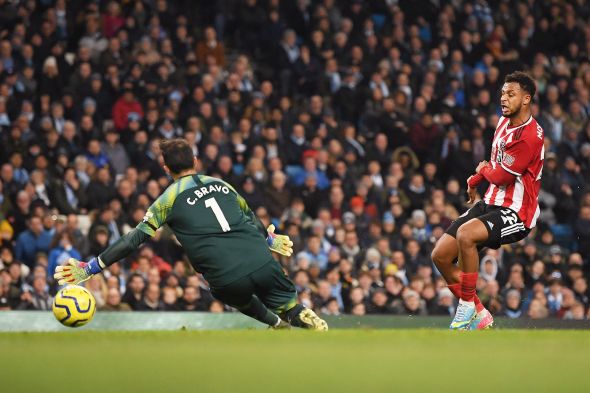 След четвърт час игра Родри изведе Марез, който преодоля Джак О'Конъл, само че Джон Игън се намеси съвършено на далечната греда. Агуеро беше деен, само че срещаше съществени компликации със здравите бранители на гостите.
