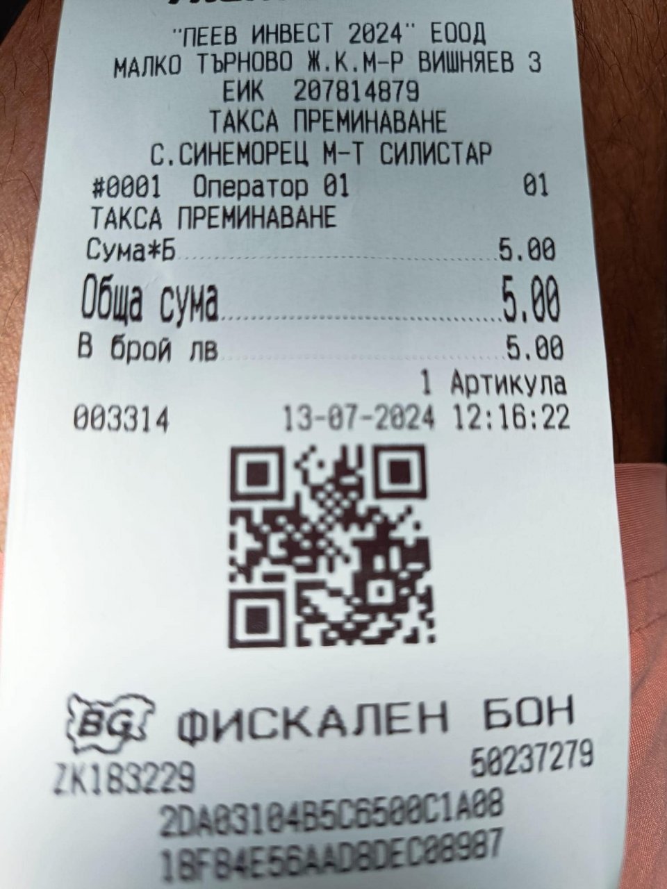 да продължи към брега, би трябвало да заплати 5 лв.. Фирмата бирник – „ Пеев инвест 2024 “, е напълно нова, записана е през април т.г. с предмет създаване и ръководство на паркинги.