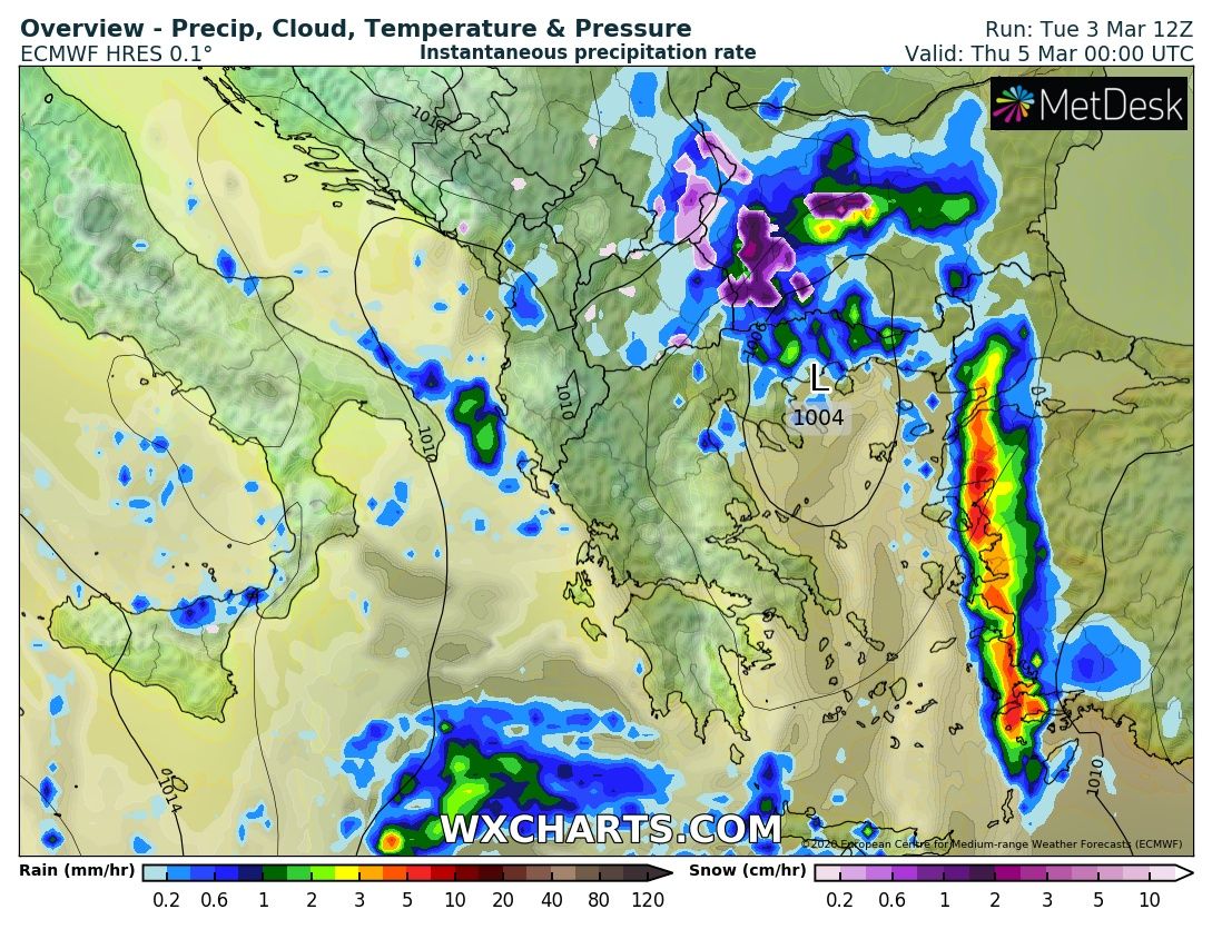 Предимно дъжд, по високото в планините на Югозападна България и в Стара планина сняг. Температурите няма да падат фрапантно. Както се вижда на картата, захлаждането ще обхване единствено Западна България, на изток дневните температури даже ще останат много високи за сезона.