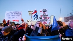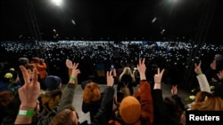 „ Тук сме да ви напомним учтиво, само че ясно, че от дълго време сме взели решение за това къде принадлежим “, сподели пред тълпата в столицата известният артист Томаш Масталир , представен от Политико.