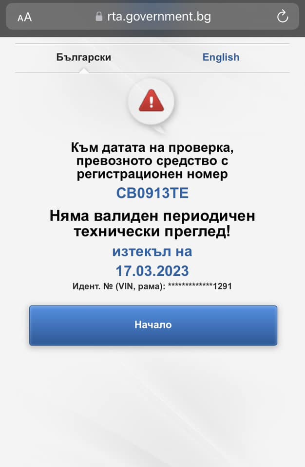 Друг консуматор регистрира, че кола не е минала обзор. Това демонстрира информация: