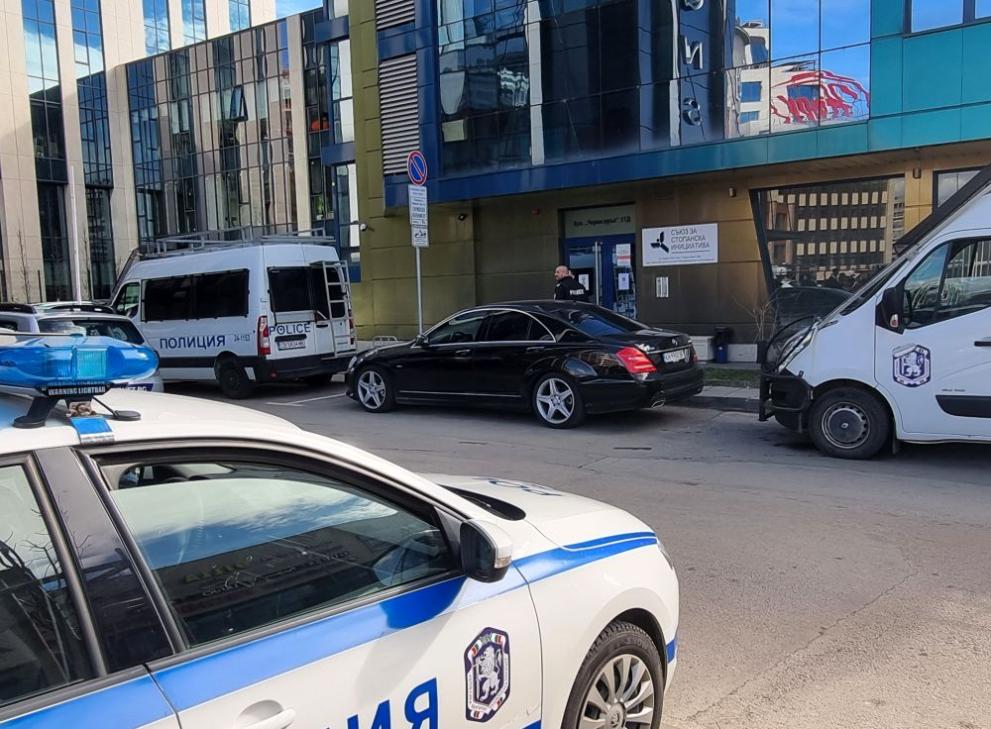 На територията на постройката, намираща се на бул. " Черни връх " 5, има коли на полицията.