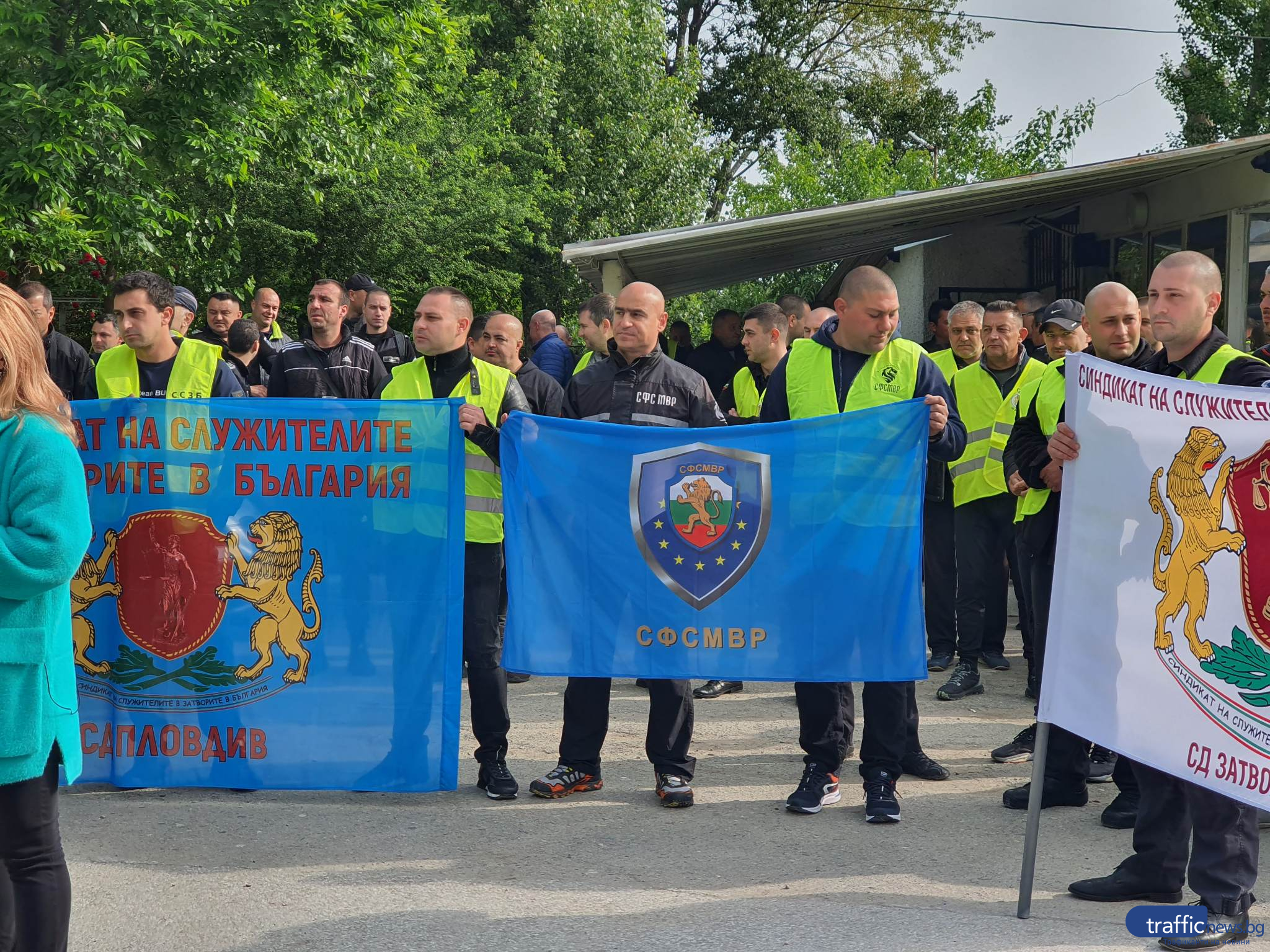 Служители на пандиза и ареста в Пловдив излязоха през днешния ден на митинг против промяната почнала от началото на настоящата година. Към тях се причислиха и сътрудниците от СФС на Министерство на вътрешните работи.