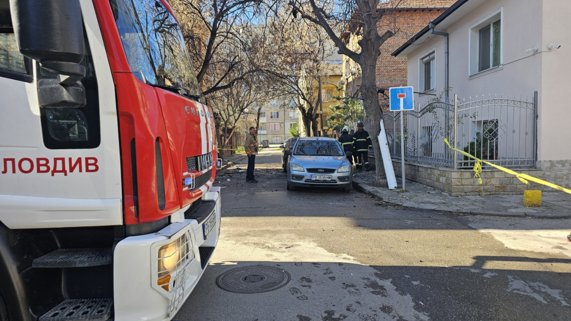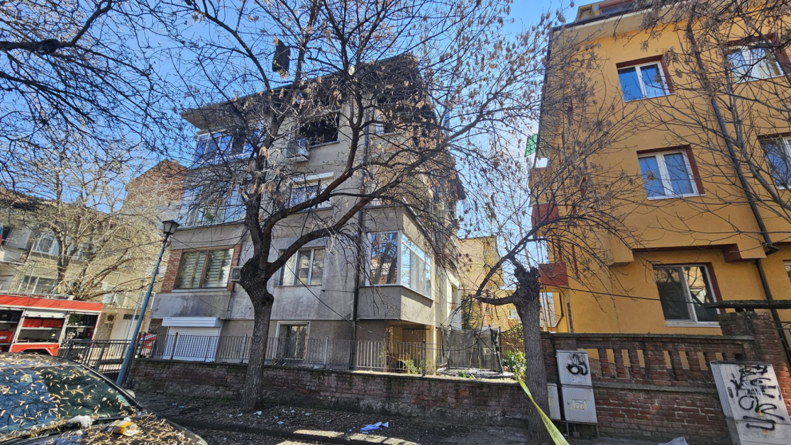 Служители от Първо районно управление (на МВР) обясняват аргументите за пожара, зародил в жилищна постройка на ул. " Ягода " в Пловдив.