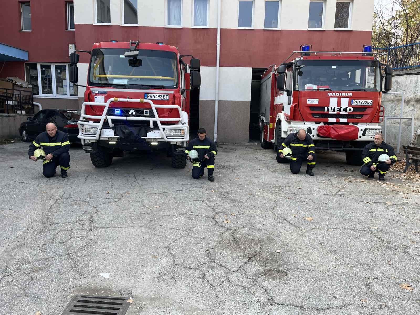 Полицаи и пажарникари в Пазарджик също отдадоха почит към Петър Бъчваров