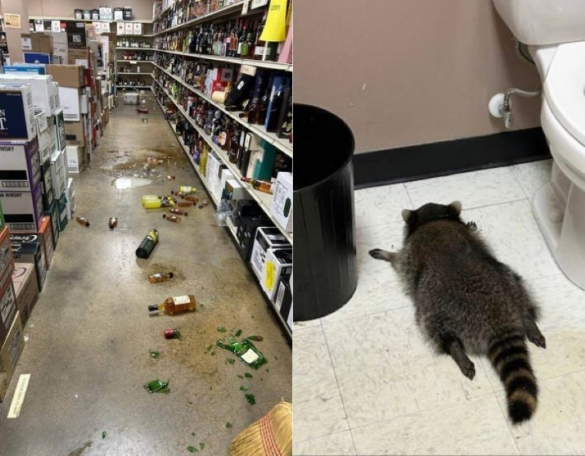 Служители в магазин за алкохол във Вирджиния се натъкнаха на необикновена панорама - обектът е мародерстван не от апаш, а от мощно подпийнал енот, съобщи BBC.