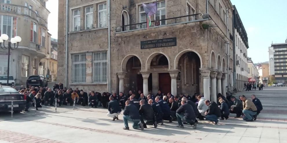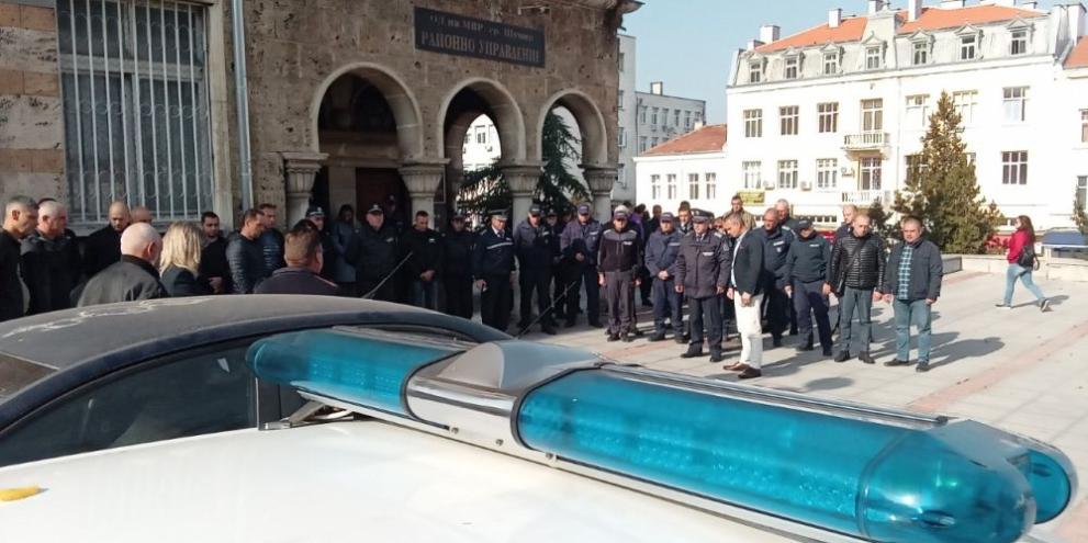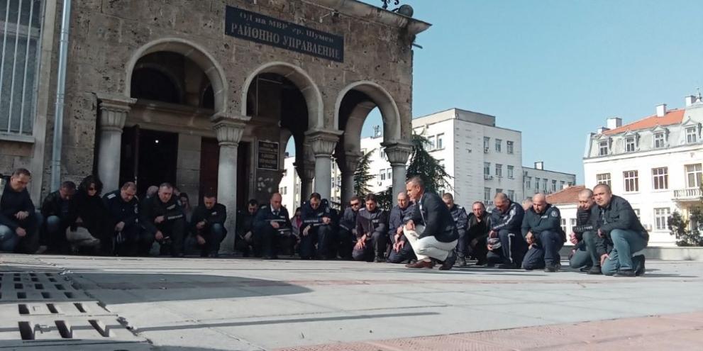 Точно в 12.00 часа служителите на реда в Шумен излязоха пред Районното ръководство в града и с включени сирени и едноминутно безмълвие се преклониха пред сътрудника си.
