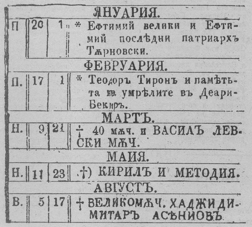 Без да носи архиерейски одежди, Христо Ботев изпревари нашите чернокапци. Поетът разчупи църковната догматика и канонизира Васил Левски. Върху стенен календар за 1875 година записа Апостола на свободата против датата 9 март: " 40 мъченици и Васил Левски страдалец ".