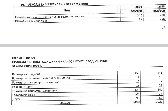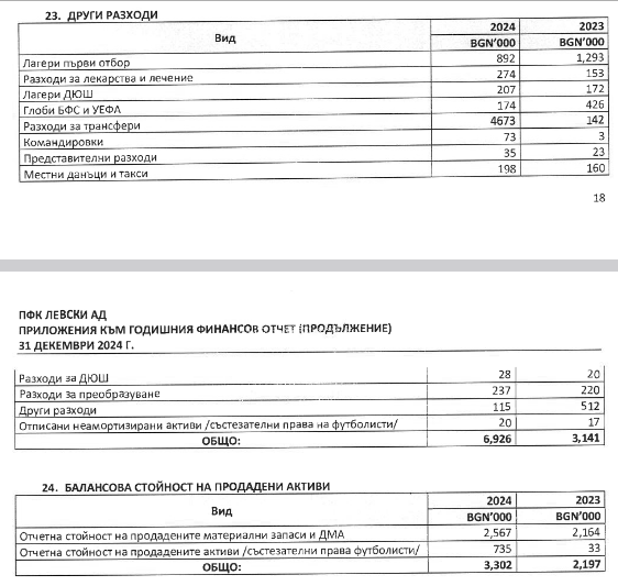 Ръководството на Левски разгласява годишния финансов доклад за 2024 година. От него излиза наяве, че “сините ” генерират доходи в размер на 41,92 милиона лв.. Цели 22 021 000 лв. са от продажба на футболисти. Година по-рано приходите от прехвърляния са единствено 1 254 000 лв..