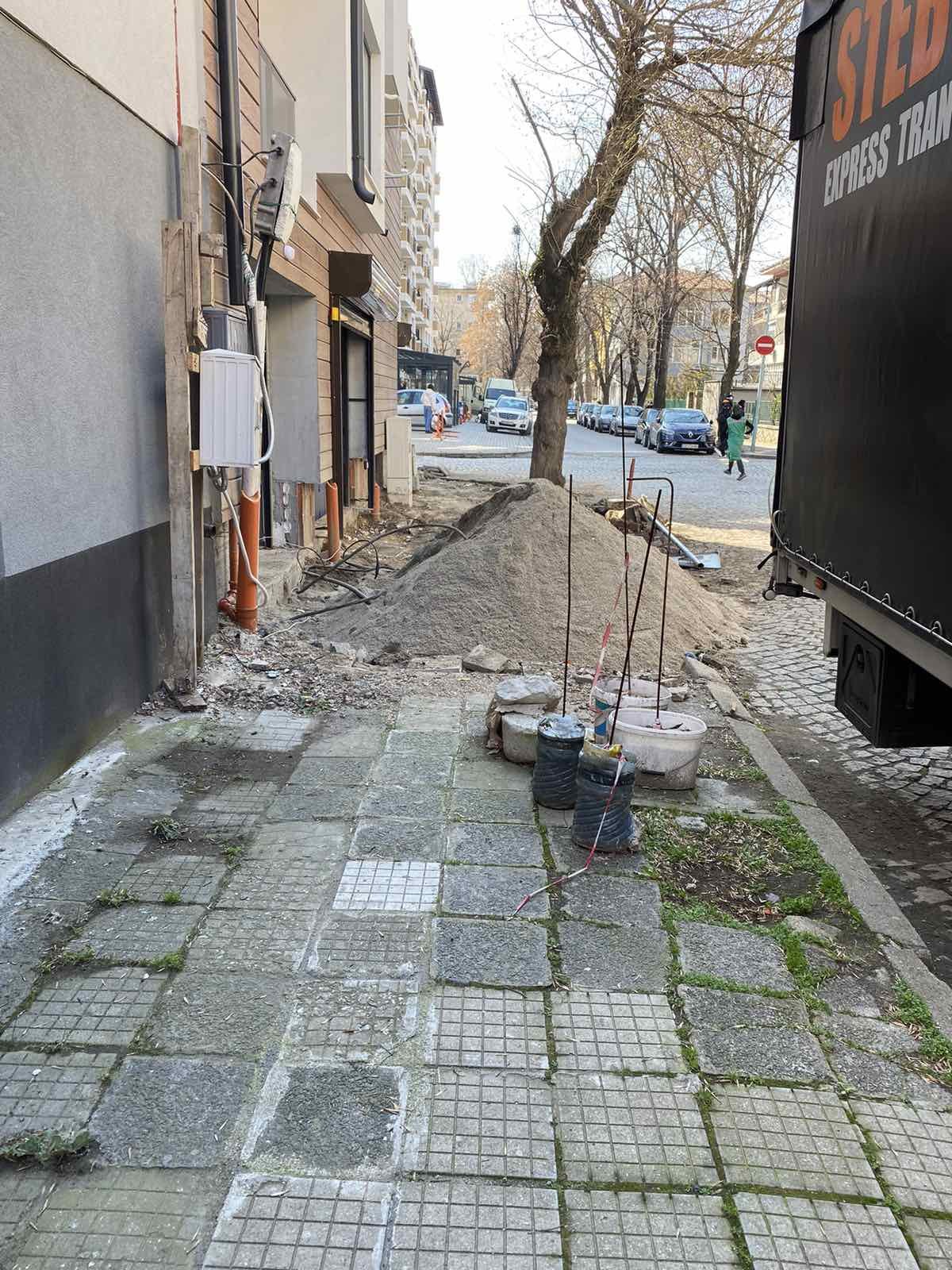 По мотив преместените контейнери, от общинското дружество обясниха, че те са изместени пред №78 на същата улица. Това се е наложило, откакто преди към седмица строителите на новата кооперация до кръстовището с ул. „ Кавала “ са премахнали огражденията, с цел да построяват тротоара пред нея. Един от съдовете за боклук бил със счупено колело и краткотрайно останал на остарялото мястото. Именно към него през почивните дни са се образували купчините боклуци.