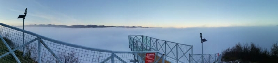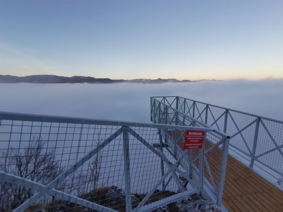Всъщност тъкмо под краката им местността през вчерашния ден била обгърната в гъста мъгла и на фотосите двамата са като че ли върху море, сами на света.