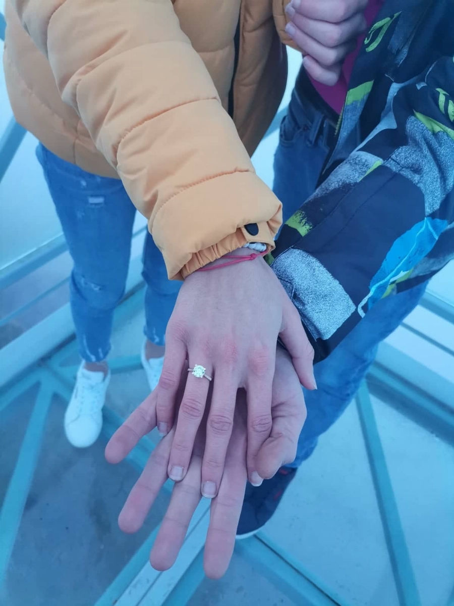 " Откак разбрах, че има нова площадка в Могилица, взех решение там да ѝ предложа. Мисля, че сме едни от първите, дори първите, които ще създадат сходно нещо. Избрахме и времето. Горе беше като приказка. Точно на пет метра горе долу под нас всичко беше потънало в гъста мъгла. Имахме почти 15 минути преди да се е вдигнала мъглата. Тя въобще не знаеше. Даже през целия път ми споделяше, че не желае да се снима, тъй като предната вечер купонясвахме. Бях й споделил, че ще отидем просто с цел да разгледаме и да се снимаме. Когато се качихме на площадката, я попитах дали се радва на гледката и че успяхме да дойдем в това хубаво време. Тя сподели: " Приказно е! ". Помолих я да си затвори очите за малко, с цел да ѝ задам значим въпрос. В момента, в който ѝ споделих по този начин и пуснах ръката ѝ, с цел да извадя пръстена, тя се разплака ", с неспокойствие споделя Даниел за мига, в който момичето му дава отговор: " Да ".