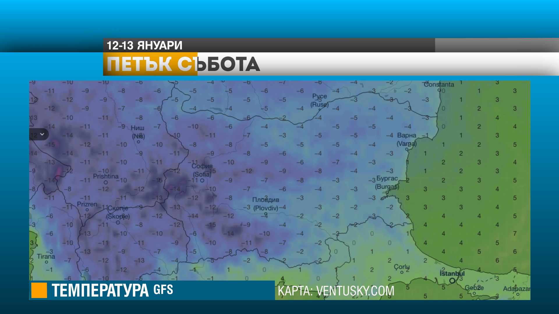 По-студено ще бъде в Северозападна България, като в региона на София температурата ще е под нулата до края на деня в петък.