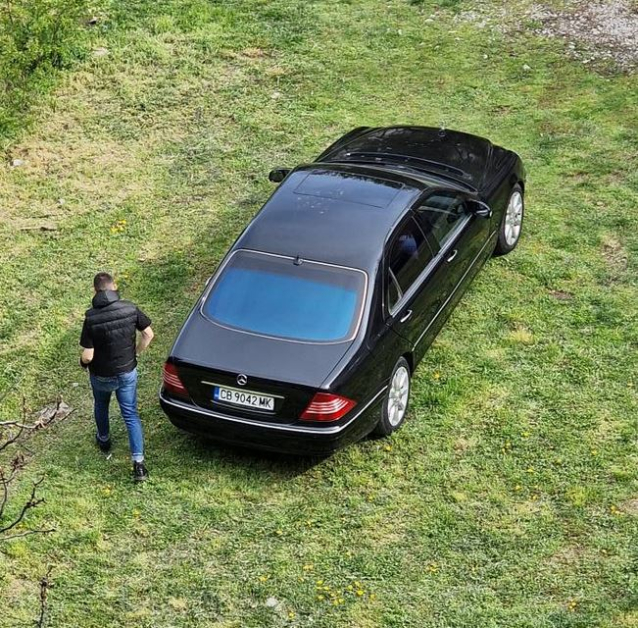 Градинка или паркинг? Черна S-класа цъфна на поляна в София СНИМКИ