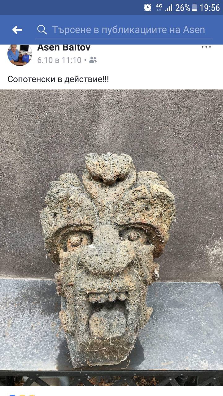Снимка на каменна скулптура разбуни духовете в болница " Пирогов ". Служители на здравното заведение настояват, че шефът УМБАЛСМ " Пирогов " проф. Асен Балтов е разгласил във Фейсбук профила си фотоса с надпис към него: " Сопотенски в деяние ".