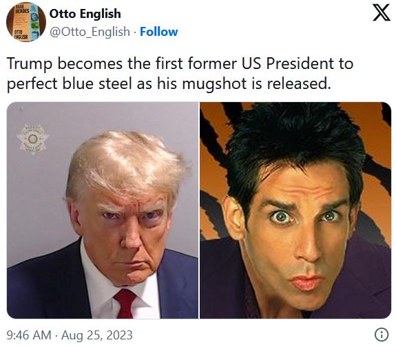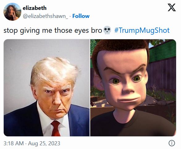 Снимката от ареста на Доналд Тръмп стана мотив за доста смешки в обществените мрежи. Тя обиколи уеб страниците, беше споделяна от неговите почитатели, по този начин и от злобари.
