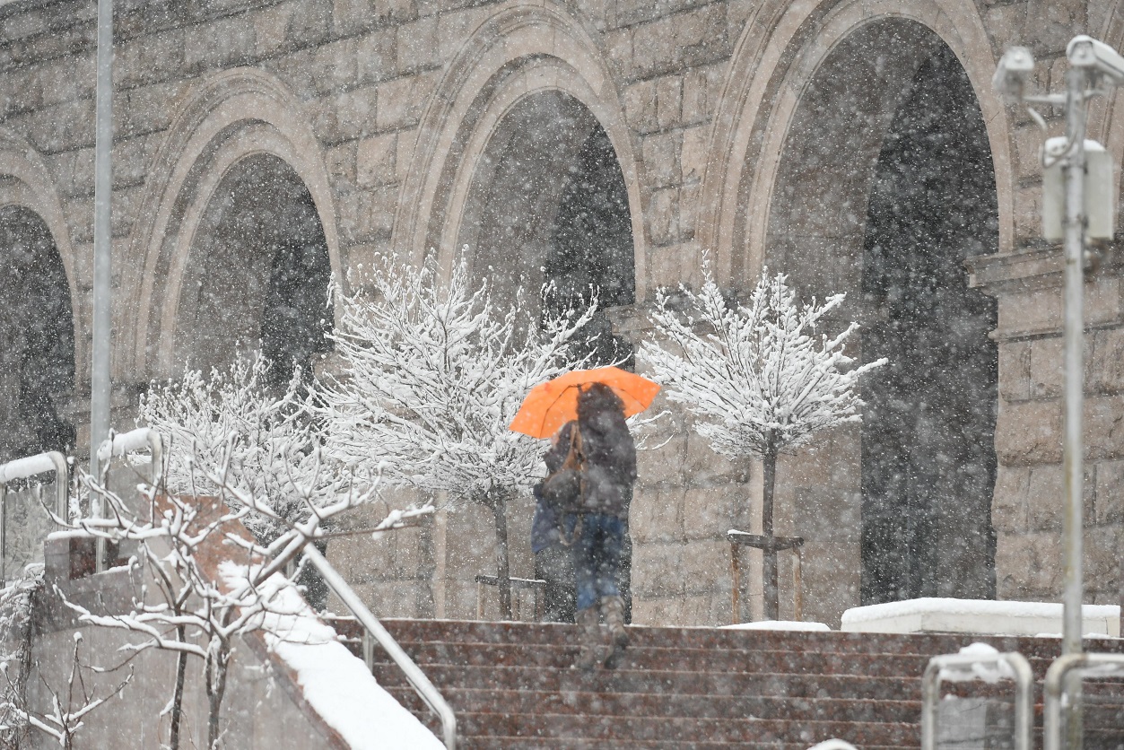Столицата побеля от сняг. Десетсантиметрова снежна завивка се образува през миналото денонощие в София, написа Булфото.