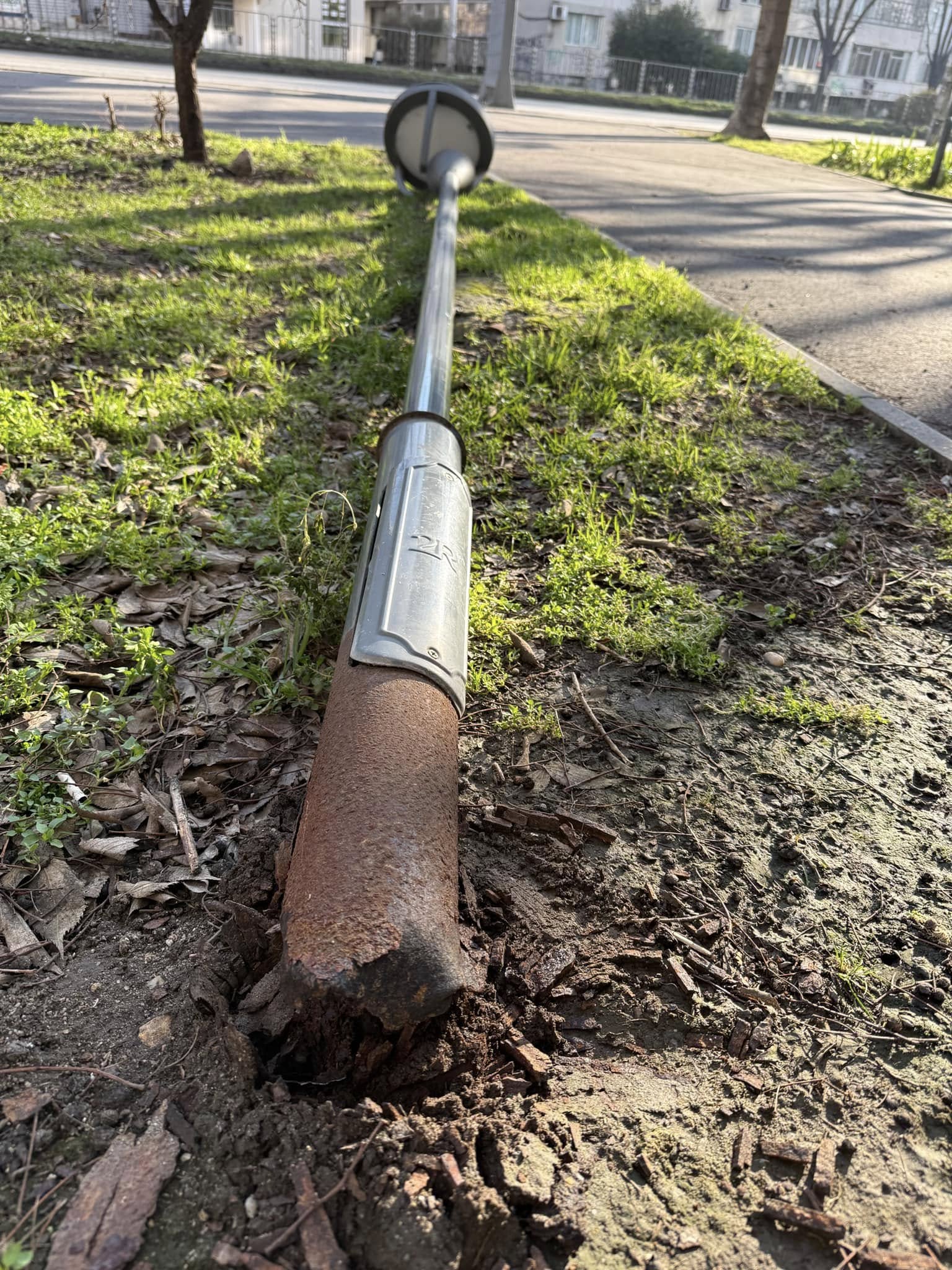 Стълб падна заради прогниване на основата - бул. ”Сливница ”95, в правата сред кръстовищата Сливница-Пирин и Нептун. Беше паднал косо на алеята, добре че е станало през ноща. Аз го реалокирах в градинката, с цел да може д се минава.
