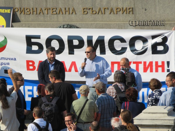 „ Борисов – васал на Путин ”. С този афиш партиите от „ Демократична България ” излязоха на митинг пред Народното събрание. Те упорстват да не бъде рестартиран планът АЕЦ „ Белене ”, под което ГЕРБ и Българска социалистическа партия е напът да се обединят, написа Флагман.