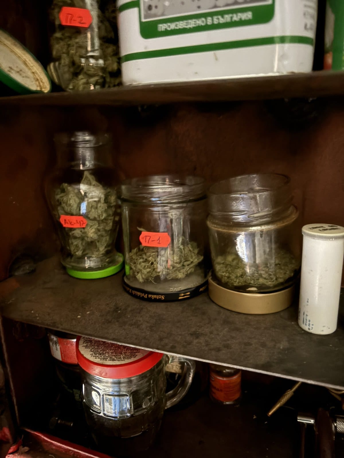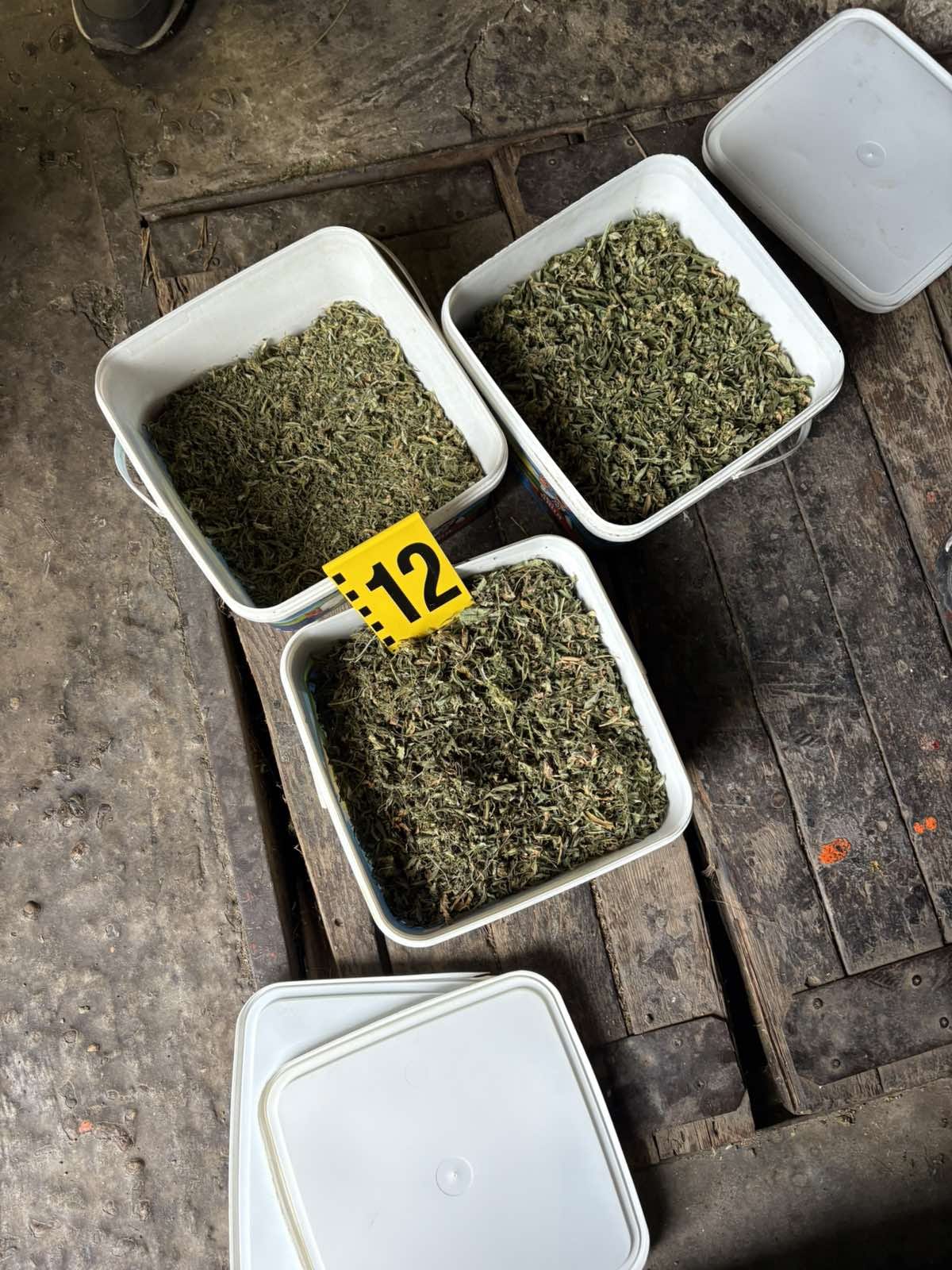 Открити били още шест стъклени буркана, железна кутия, три пластмасови кофи, цялостни със суха листна маса (марихуана), както и железна кутия, съдържаща конопени семена. Намерен и конфискуван бил газ предупредителен револвер „ Аркус “ с пет боеприпаса към него. Общото количество конфискувани наркотични субстанции са 70 растения - 20 кг и 400 г канабис и към кг и половина марихуана.