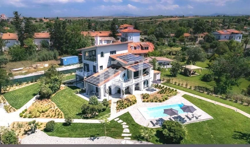 Снежно бялото триетажно имение е същински пример на лукса и скъпотията, с две просторни веранди и парапети от ковано желязо.