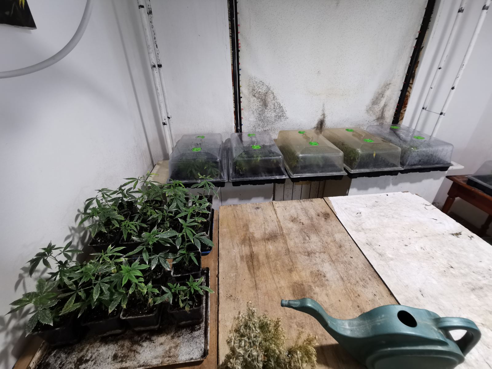 Там чиновниците на реда попаднали на особено построена и оборудвана с нужната техника оранжерия. В парцела са открити и конфискувани над 500 растения от рода на конопа, с друга височина и етап на растеж- от разсади до подготвена „ продукция “.