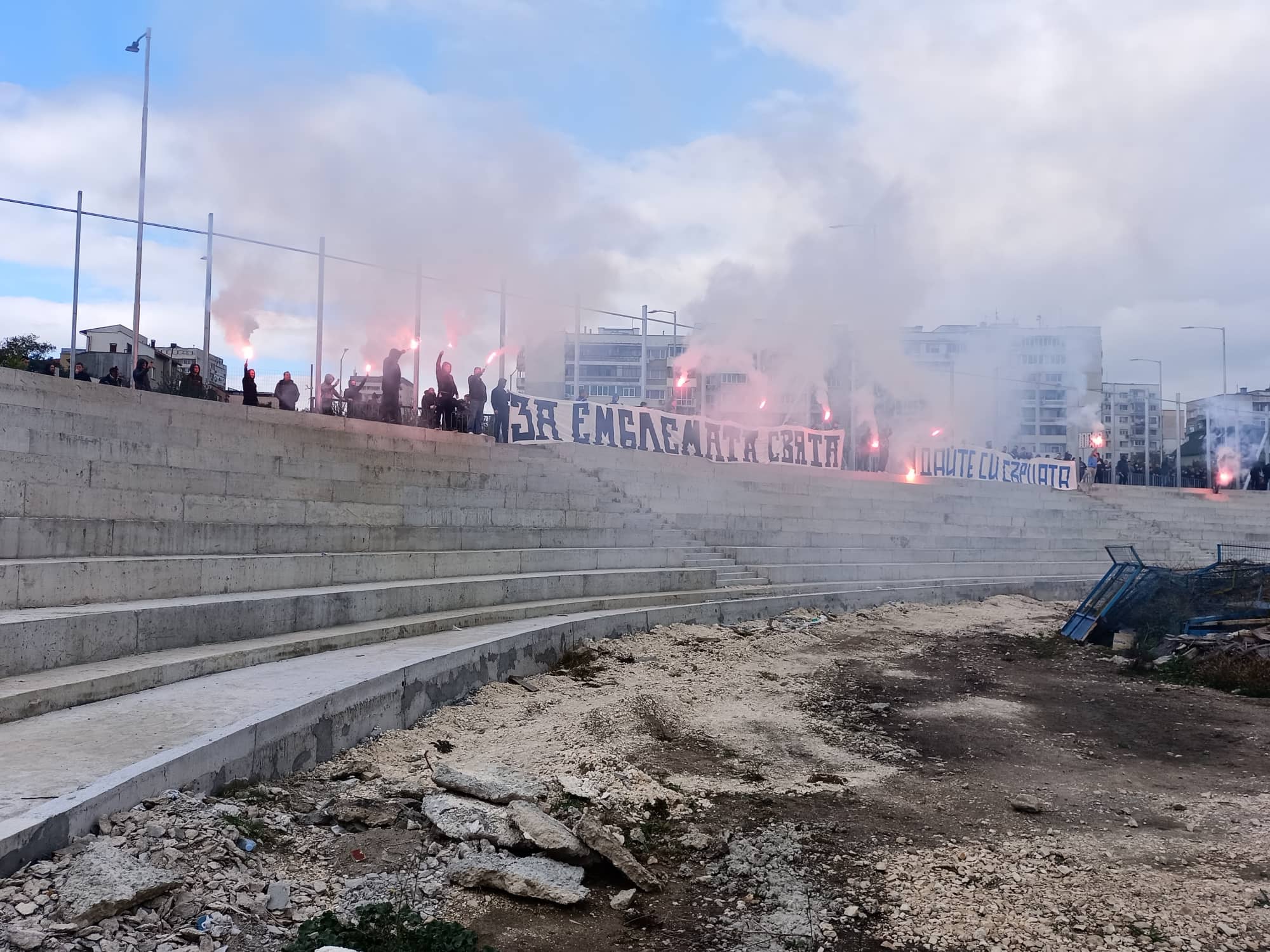 Двубоят се играе без аудитория, а агитката на Спартак се е разположила на бул. " Васил Левски " извън стадиона, откъдето поддържа своите любимци. Те пък отидоха пред тях особено и ги поздравиха преди срещата.
