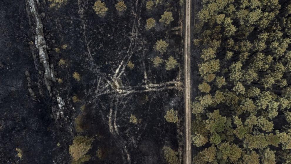 Снимки разкриват последствията от горския пожар в планината Сиера де ла кулебра, провинция Самора в Испания.