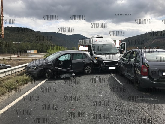 Снимки от верижната катастрофа край Благоевград! Има ранени!