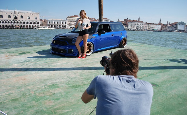 Интересното е, че тази година в календара място ще намерят много налични коли (макар и мощно тунинговани). Такъв е VW Polo от по-ранните му превъплъщения: златна багра, оптимално свалено окачване, 3-елементни джанти… Ще забележим също първото потомство на MINI Clubman в двуцветно осъществяване, златни PUR джанти, лежащ безусловно върху пътя.