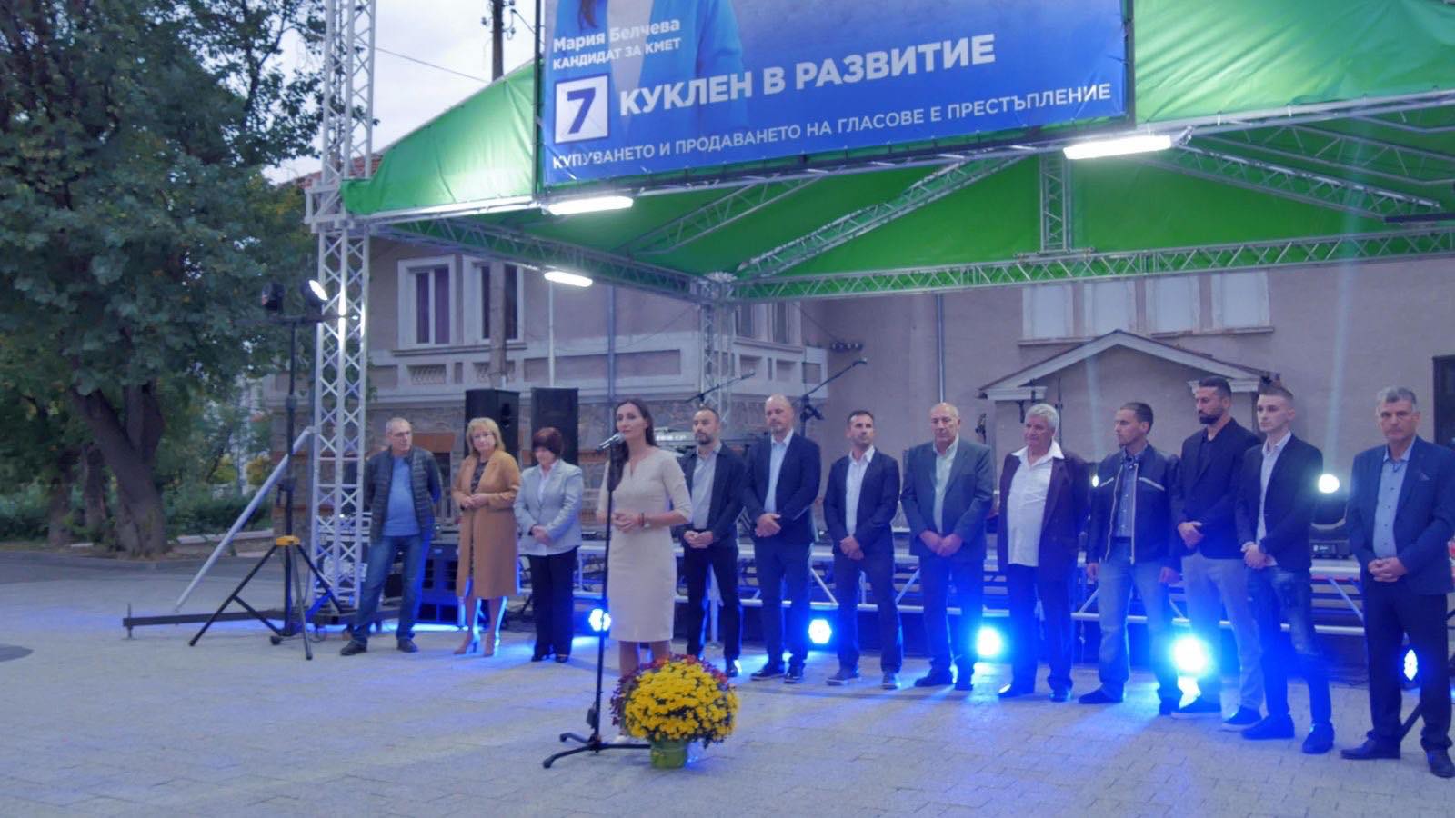 ]Снощи Куклен бе празник и проява на безрезервната поддръжка на Куклен за Мария Белчева. Площадът се оказа стеснен за хората пристигнали да засвидетелстват признанието си за свършеното от Мария Белчева през двата и мандата като кмет, и да изразят поддръжката си за нея за трети. Хората се поздравяваха с „ Честит Празник! “.