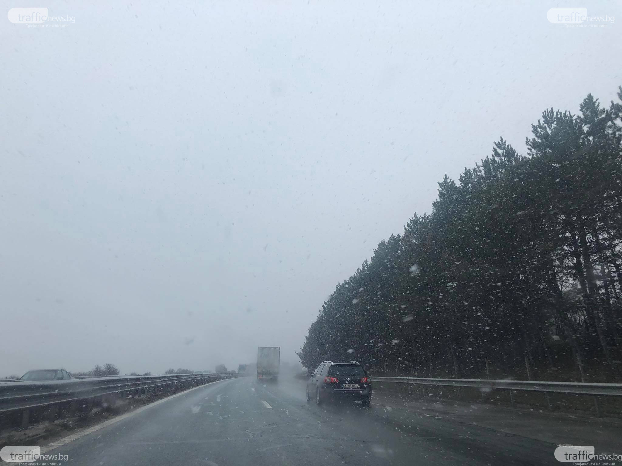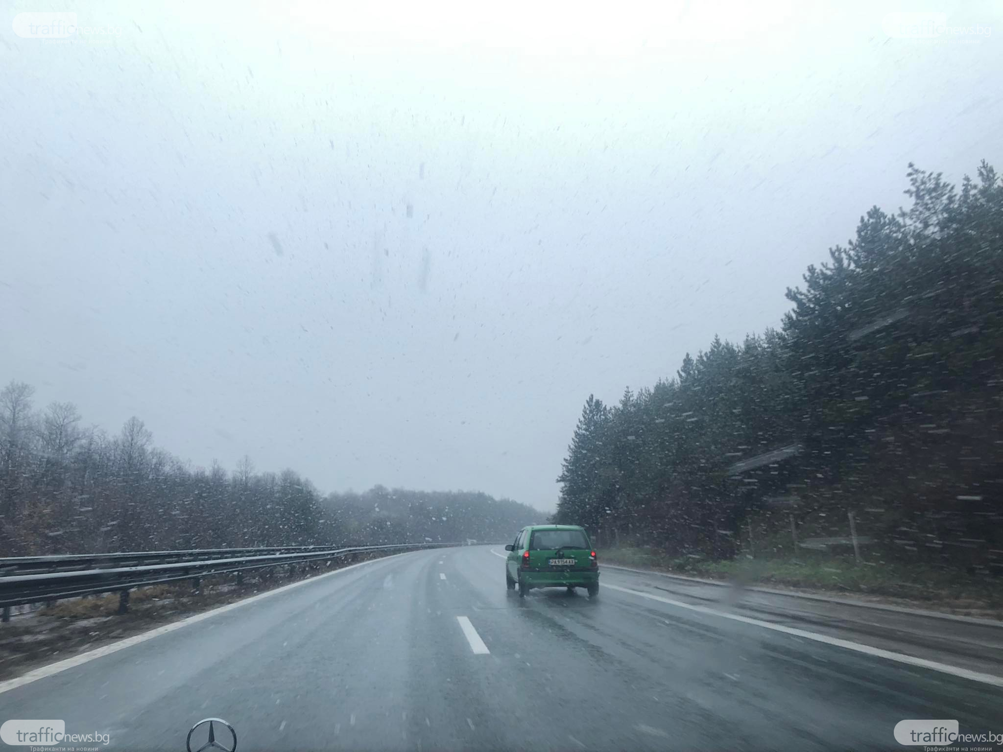 Сняг валя на парцали по Автомагистрала „ Тракия “ по-рано през днешния ден. Това алармираха читатели на TrafficNews , които изпратиха фотоси до редакцията ни.