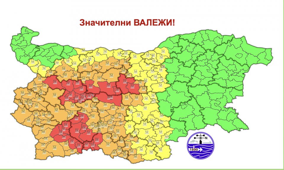 Междувременно прогнозите на синоптиците за рисково неприятно време през днешния ден се утежниха в допълнение. Червен код бе разгласен и за Софийска област, като предизвестието е в действие до края на денонощието.