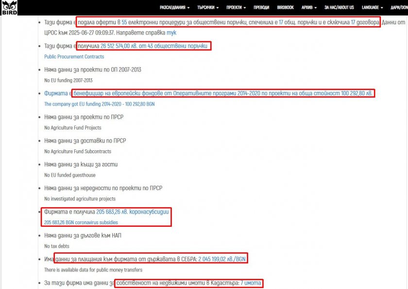 Електронният указател на АОП сподели, че " Залива 47-СП " АД, компанията на обвинителката на Коцев, е спечелила в реалност 17 търга към субекти, свързани с общината. Само една от тях - след локалните избори на 23 октомври 2023 година, когато Коцев детронира дългогодишния кмет на ГЕРБ Портних. Участвала е в общо 55 процедури от 2020 година насам.