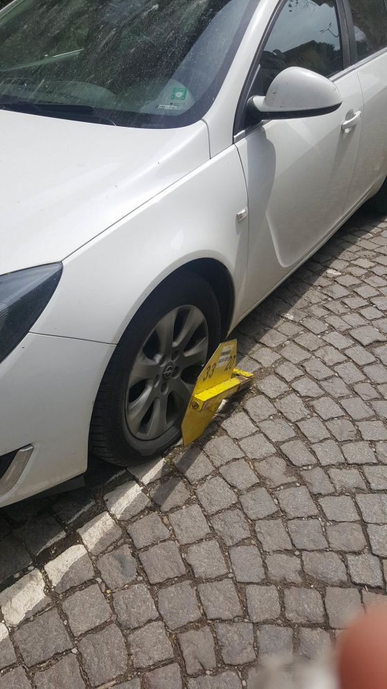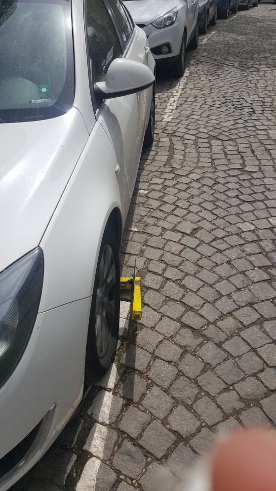 Водачът е оставил автомобила си на улица " Виктор Юго ". На пръв взор скобата наподобява напълно постоянна, само че е сложена фиктивно, като просто подпира гумата. Не е ясно от кое място притежателят се е сдобил с нея.