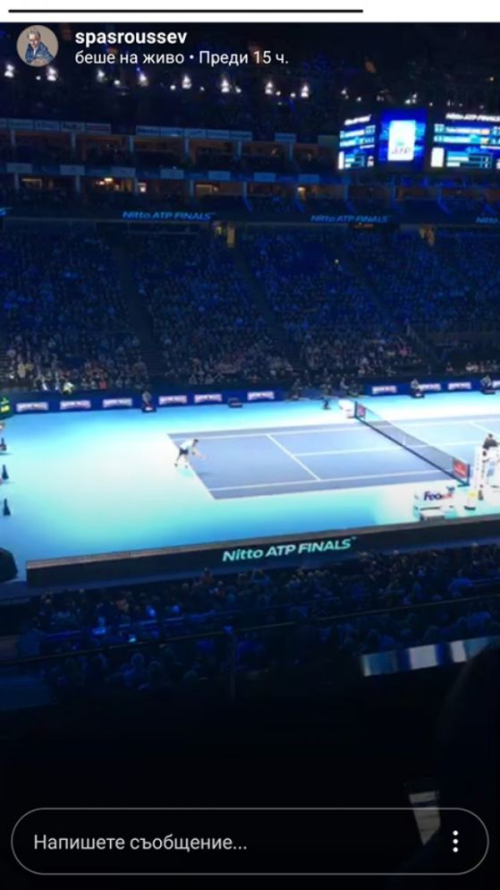 Собственикът на Левски Спас Русев се поддаде на манията на Григор Димитров и се появи персонално в зала " О2 Арена " в Лондон, където текат финалите на АТР с присъединяване на осемте най-хубави тенисисти през годината.