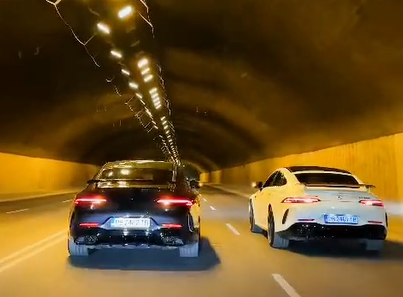 На тях се вижда по какъв начин лъскавите коли карат на спешни, влизайки в Тунела в посока Сточна гара. Метри след входа на пътното оборудване водачите натискат педала на газта до край. Зад тях кара автомобил, който снима надпреварата.