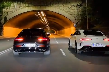 Два лъскави мерцедеса мерят сили в Тунела в Пловдив