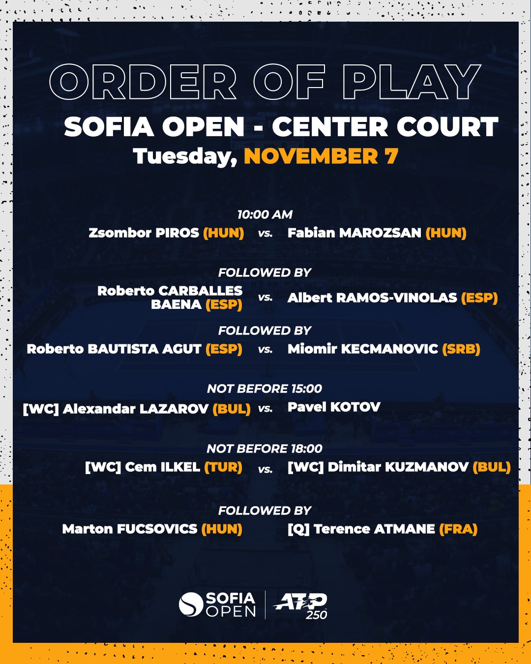 Sofia Open се завръща в " Арена София "! От на следващия ден част от звездите на международния тенис ще се изявяват в нашата столица, а българската аудитория също така ще има опция да поддържа двамата ни състезатели в главната скица, а точно Александър Лазаров и Димитър Кузманов.