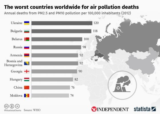 Според Световната здравна организация (СЗО) и Европейската организация за околна среда (ЕАОС) България се подрежда измежду страните с най-замърсен въздух.
