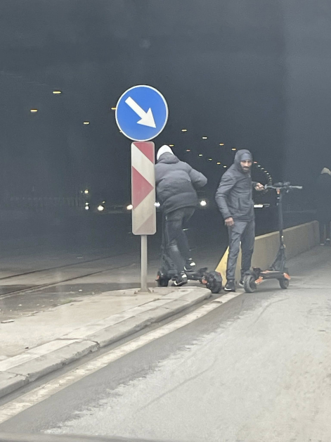 Тунелите в София са проектирани за коли, не за каскадьори. Въпреки това, две момчета вземат решение, че асфалтът в тунела е превъзходен за „ тротинетен дрифт “, освен това – в лявата лента, при липса на видимост и срещуположен поток от коли с висока скорост. Това не е рисков спорт – това е неблагоразумие, граничещо с опит за самоубийство, само че и опасност за останалите.