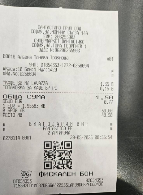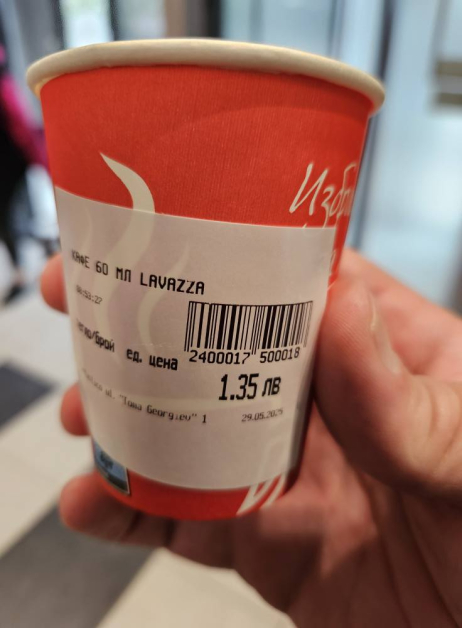 София, Люлин 1, 08:55 ч. Мъж си купува кафе от супермаркет „ Фантастико “. Очаква ароматна глътка уют и събуждане. Получава… фискален пестник за 15 стотинки. Не за добавка. Не за бадемово мляко. А за… чашата.