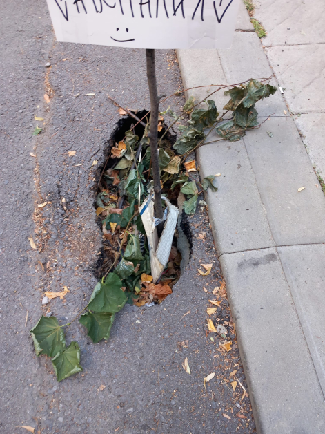 Друг гражданин на столицата е сложил клони, велпапе и е забил табела с надпис: „ Пряк път до Австралия “.