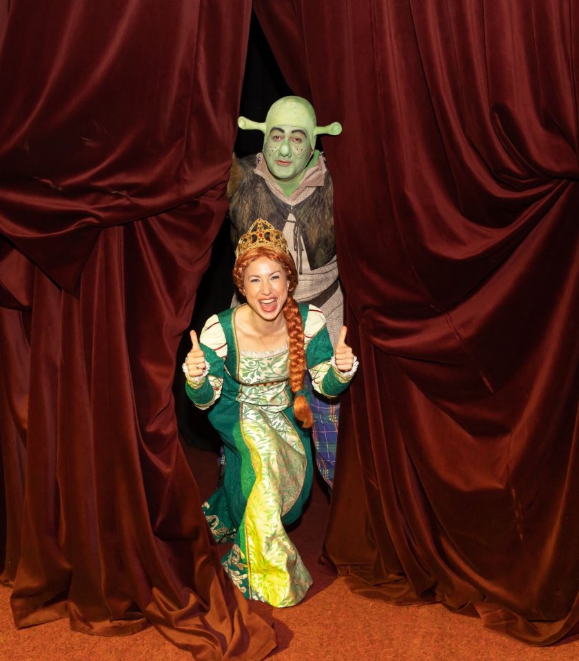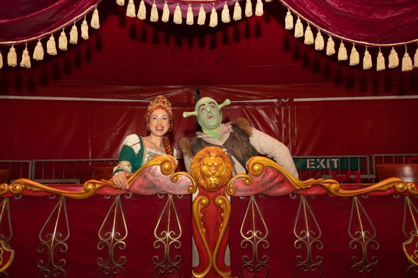 Весела Делчева като Фиона и Атанас Йонков като Шрек чакат децата в цирка