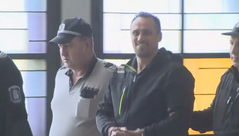 Той беше докаран с белезници под защита в постройката на Съдебната палата.