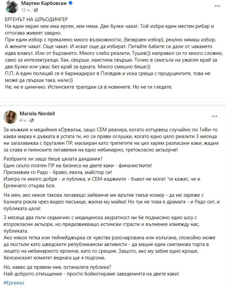 Вижте мненията и меметата във фейсбук, които събрахме след риалитито.