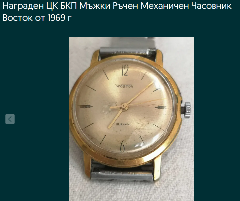 Награден извънредно необичаен мъжки часовник от 1969 година се продава още на цена от 180 лв.. Това е извънредно необичаен часовник, особено поръчан за Централния комитет – върховен орган на Българската комунистическа партия.