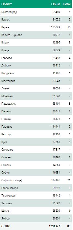 Новозаразени в страната - 89 (67.42% неваксинирани)